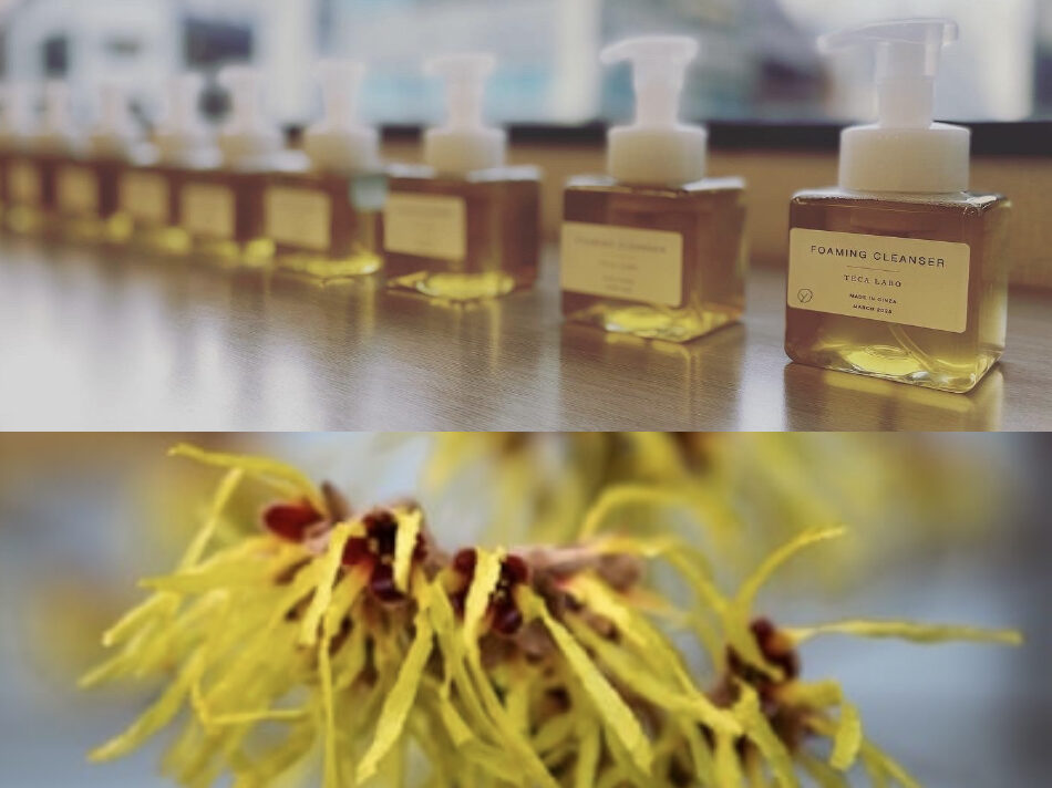 *ハマメリス・・・古くは、アメリカ先住民族のインディアンが、皮膚炎の緩和などに使用されていたといわれる植物です。近年ではタンニンなどの抗酸化作用や肌の引締め作用に注目し、オーガニック化粧品など美容にも広く活用されています。今回はハマメリスエキスを使用します!